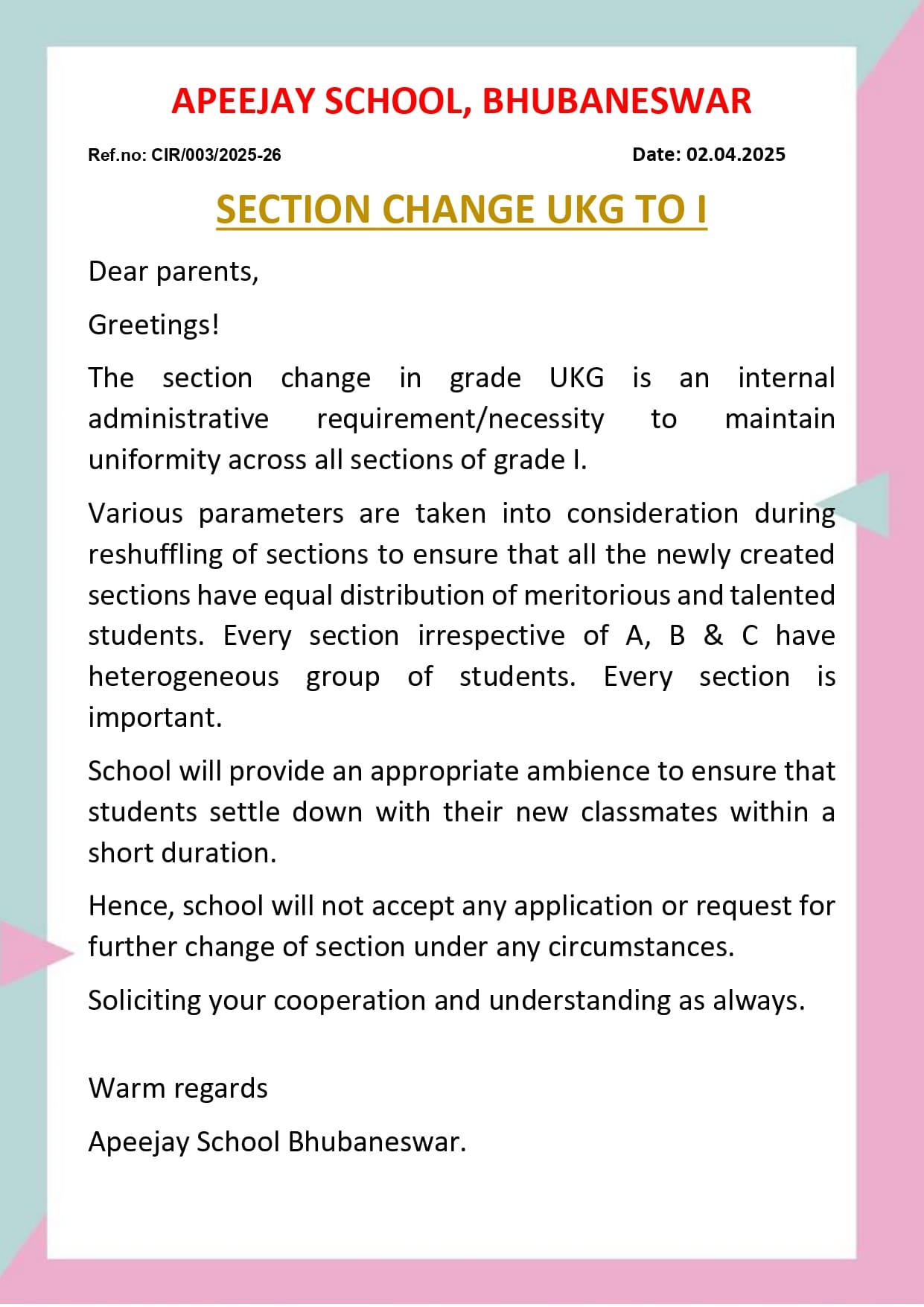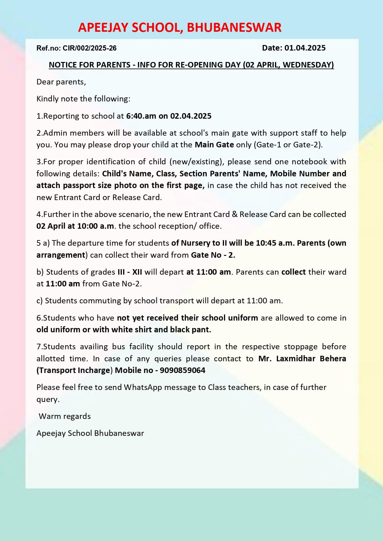 2 | Notice for parent-Info for re-opening date | View Details | 01.04.2025 |